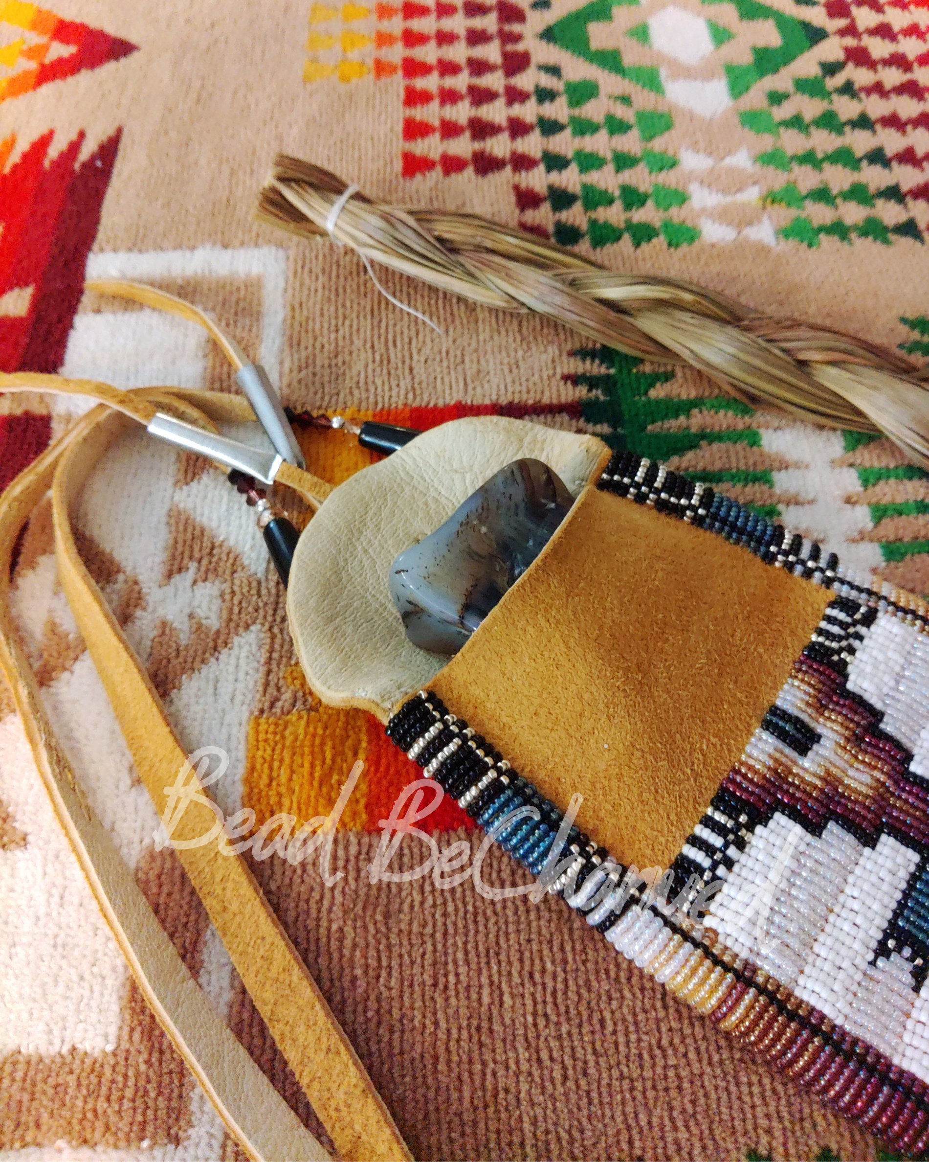 Medicine Bag, 'Rise'- Hand Beaded Traditional Buckskin Strike-a-Light Bag, Indigenous Fashion