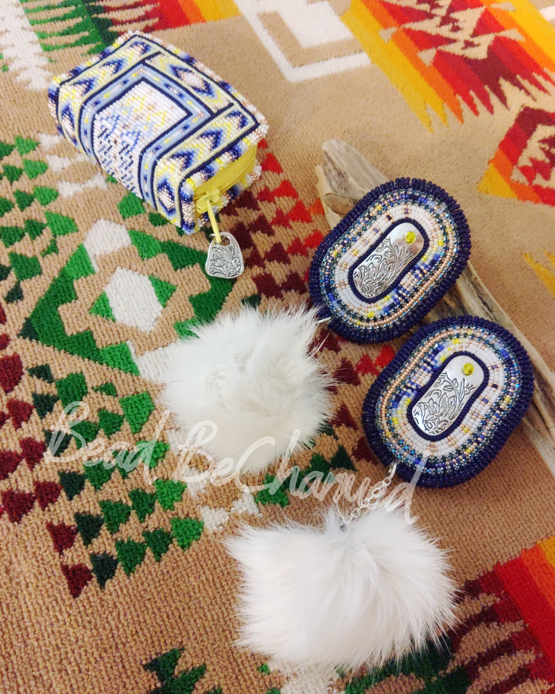 Blue and yellow - a refreshing, striking color combo that invokes spring and happiness. Paired with whimsical dandelion charms and white rabbit fur pompoms, that's exactly the feeling that the theme behind Blueberry Limonaia brings: fresh air, happy warm weather, and lightheartedness. Perfect accessories for Spring Break! Bringing together a beautiful color palette of shades of blue and yellow, clean chalk white, gold plated beads, this 2-piece set has been fully hand beaded and hand assembled - no mass production or machine sewing involved. They'd make amazing accessories for a white spring dress with cork wedges and a wide-brimmed sun hat!