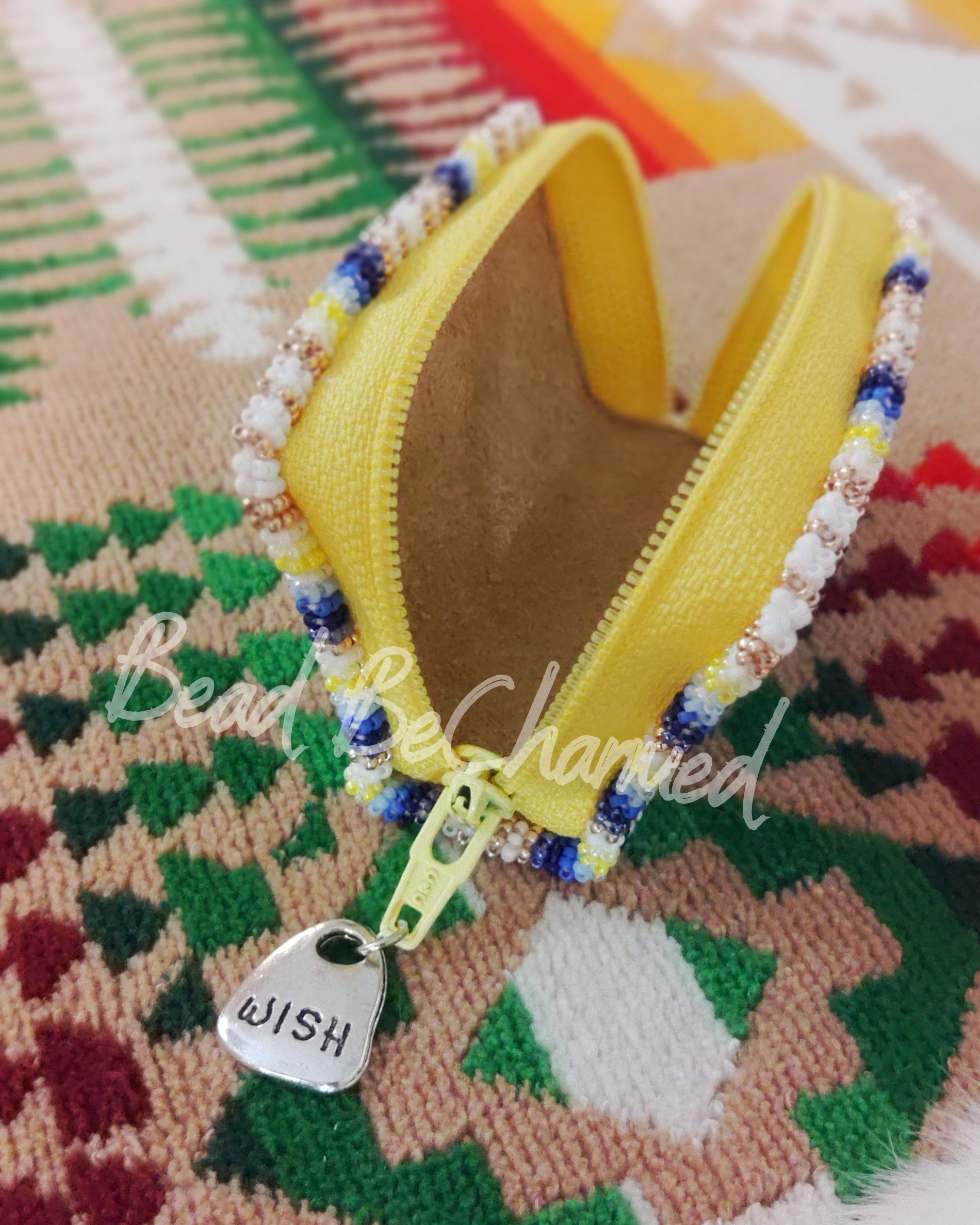 The Mini coin purse has been fully assembled by hand, including the heavy-duty polyester zipper and buckskin purse lining, and features a dandelion charm zipper pull that says 'Wish' on the back. The purse is small enough to fit into most regular-size purses. This beautiful little coin purse is built to last and would make a great heirloom or hand-me-down piece!