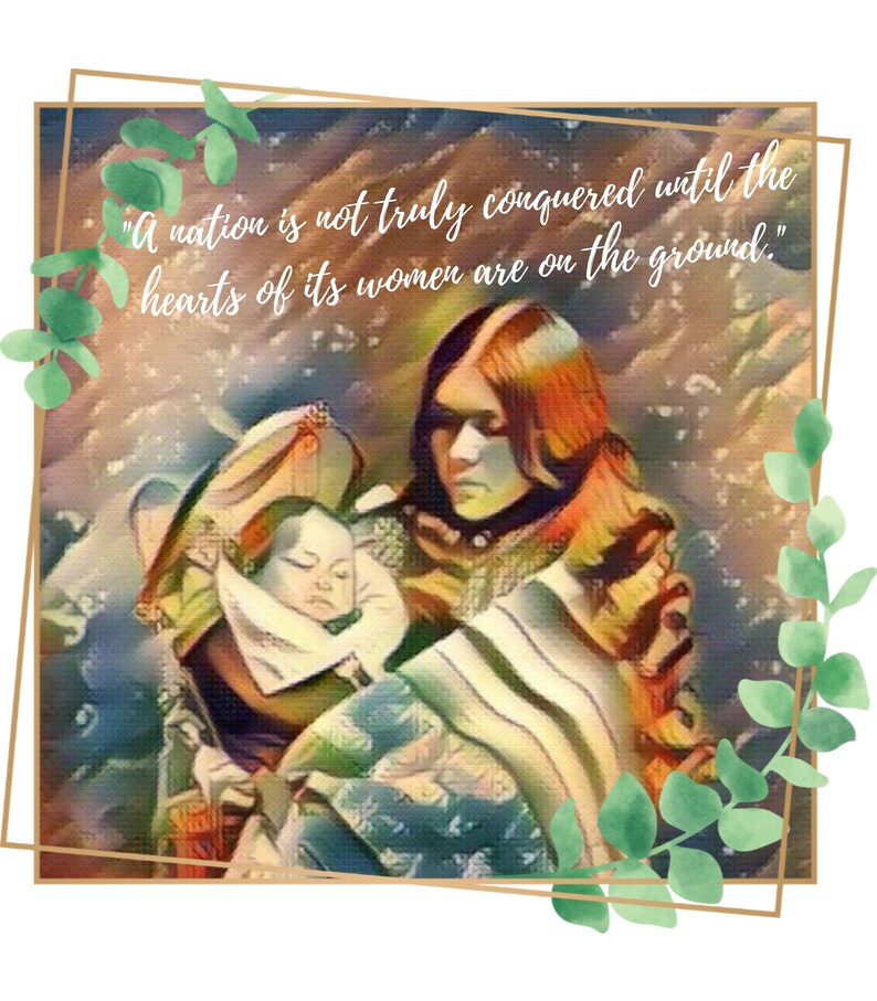 'Matriarch' honors our clan mothers and ancestors with rich cotton colors and vibrant art. Featuring a famous quote by a Great Plains tribe leader, it illustrates the importance of respecting and protecting our Native women, the heart and future of our tribes' cultures. Matriarch was designed to spread awareness for social justice and protection for Native women and children. Show your support for Native women by proudly wearing Matriarch everywhere you go! This design features original mixed media art, created by an Indigenous mixed race artist.