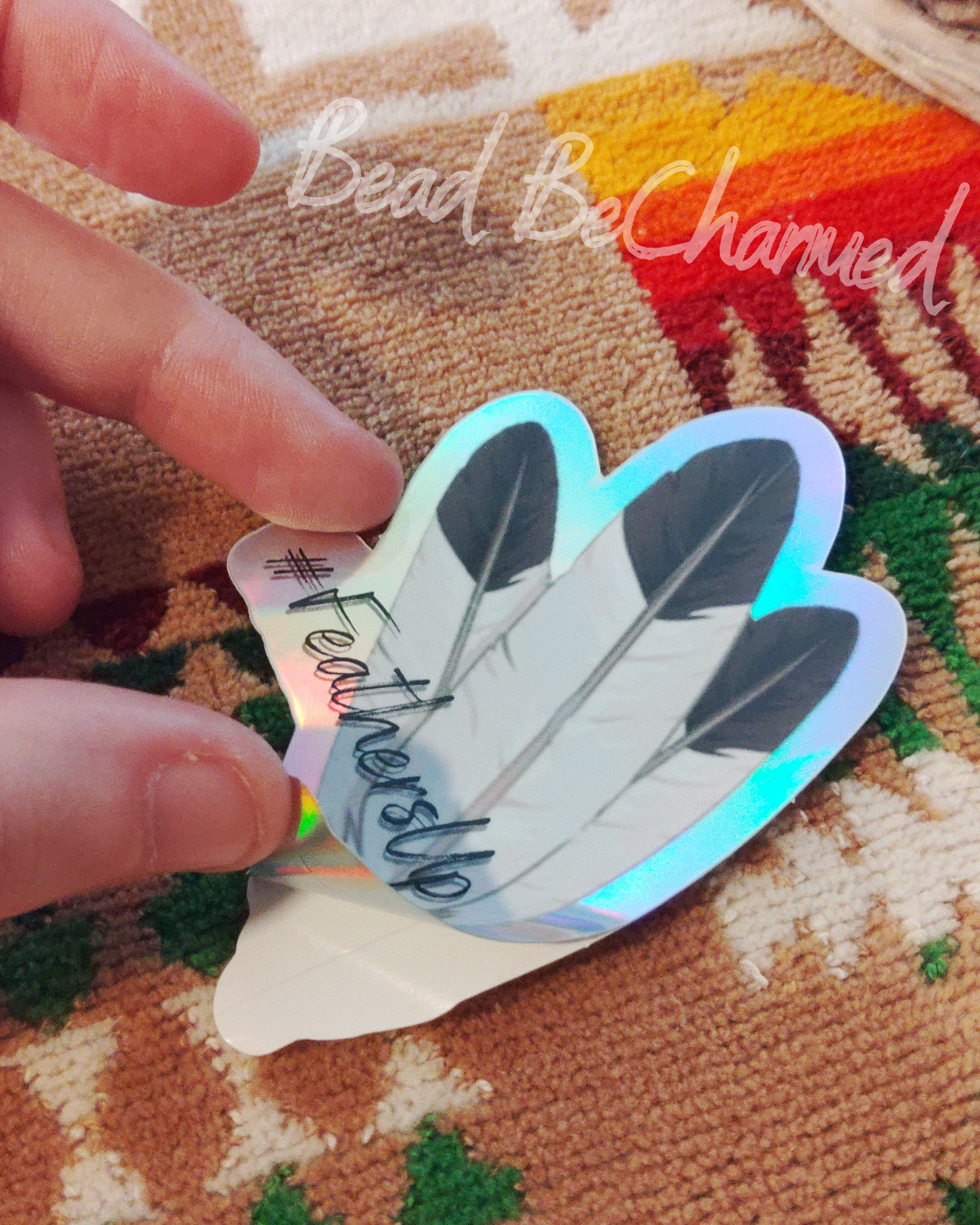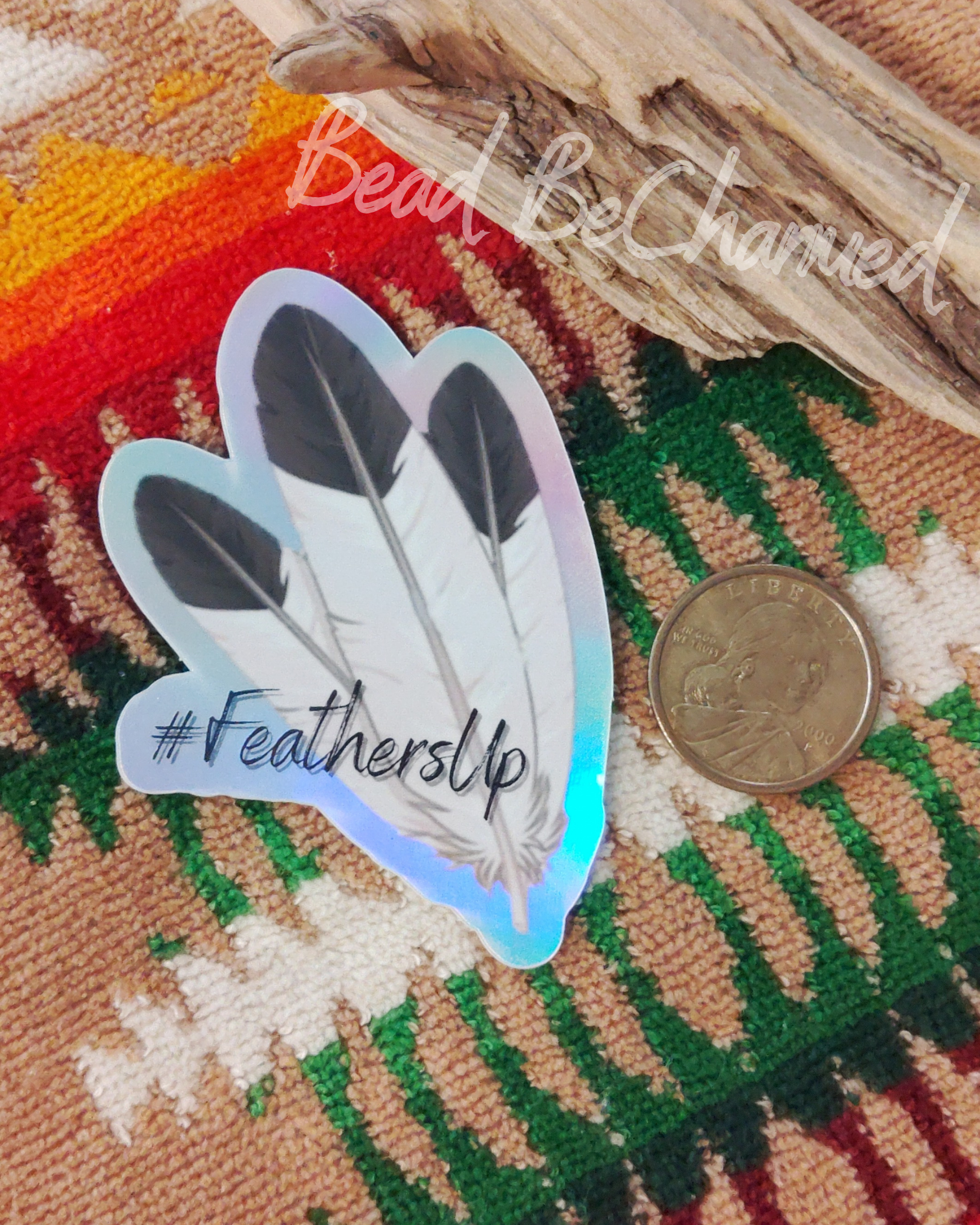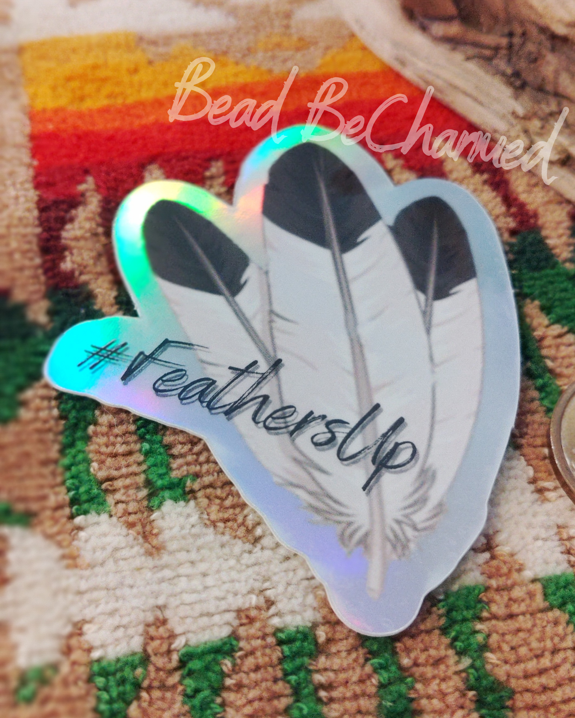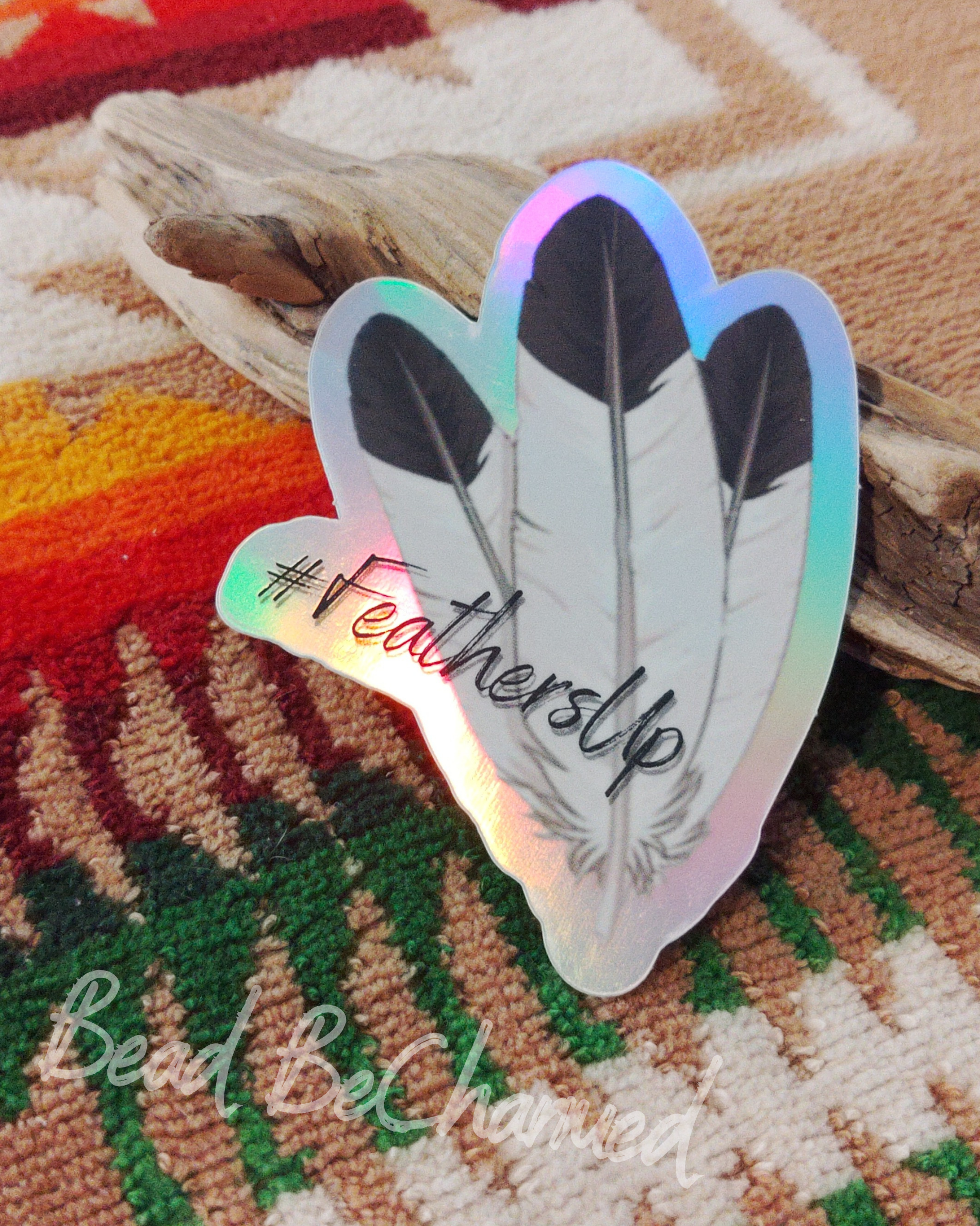Stickers, '#FeathersUp' - Kiss-Cut Vinyl Holographic Stickers, Indigenous Awareness Decal